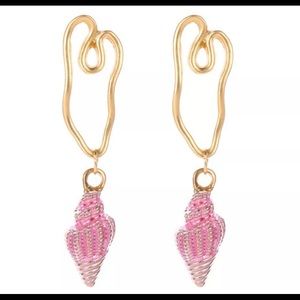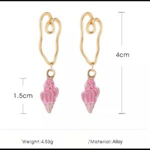 Pink Golden Toned Alloy Beach Conch Shell Earrings Jewelry