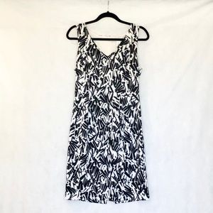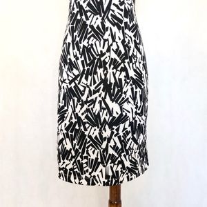 Gorgeous pattern dress by WHBM. Sleeveless, v-neck, concealed back zipper, fitted bodice, a-line skirt. Poly/elastane blend, fully lined, 38” long, 18” armpit to armpit, 15.5” waist seam to seam, 19” hips seam to seam. Preowned, excellent used condition.