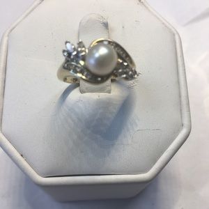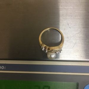 14K yellow gold stamped 14K not plated diamonds and 6 1/2 natural white pearl and diamonds comes with 4 marquee shares diamonds and round diamonds size 5 1/2 comes with free size free size free gift box free shipping