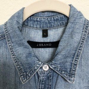 J Brand "Marlow" shirtdress in nimbus. Blue denim ombre wash. Button-down front, long sleeves, & 4 pockets. Cotton. Machine wash.