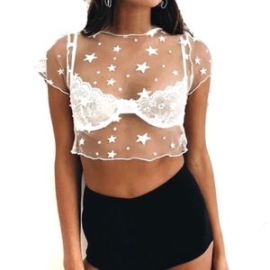 Super Attractive Stars Short Sleeve Fishnet See through Mesh Camisole Crop top