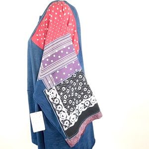 A mix-matched handkerchief print highlights the sleeves.