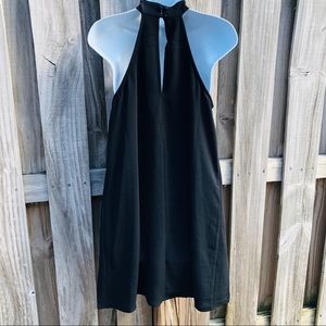 Lulus Exclusive! It's easy to fall in love with this Lulus Black Halter Swing Dress! Medium-weight woven fabric, with a light and airy texture, falls from a high, halter neckline, into a sleeveless, swing silhouette with handy side-seam pockets. Back keyhole with two top buttons. Dress up with heels and a clutch, or pair with sandals and sunnies for a casual look. Fully lined. 100% Polyester. Hand Wash Cold. Imported NWOT