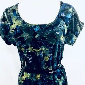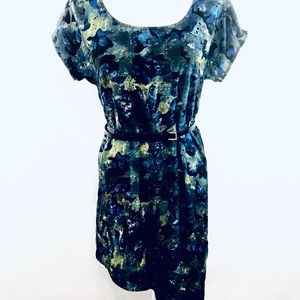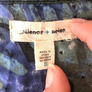Silence + Noise Silky Asymmetrical Shirt Dress Womens Blue Black Printed Sz S.