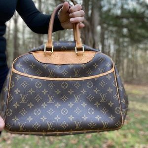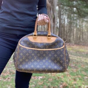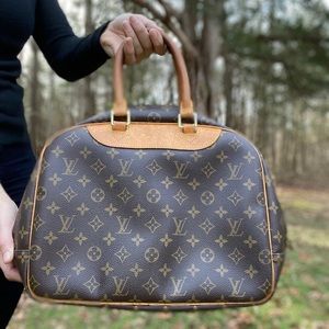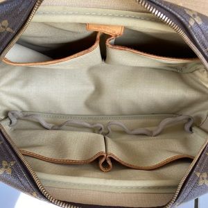 Good. Light scratches and moderate tarnishing at hardware; moderate discoloration, scuffs and scratches at handles and trim moderate marks and light residue at interior.