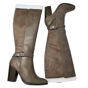 @pj23corbin Hi Pamela they are faux suede, heel is 3 1/4” aprox and they run true to size.