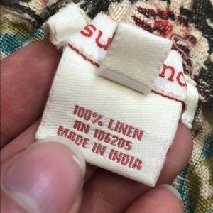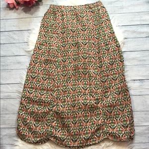 Sundance tan colored maxi skirt with earth tones geometric pattern and scalloped hem as pictured. This skirt is 100% linen and is like new used condition.