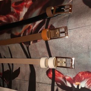 Stunning high quality faux leather belts in black, brown, & taupe all with gold hardware! New/Never worn💗⛄️