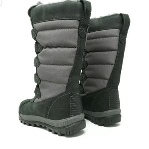 These Timberland boots are feature a faux shearling primaloft insulation they are true to size lace up vamp round toe and waterproof with a lug sole.
