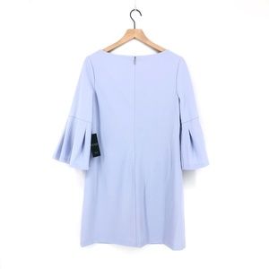 Lauren Ralph Lauren petite bell sleeve jersey sheath dress in soft periwinkle. Bateau neckline. Concealed center back zipper.