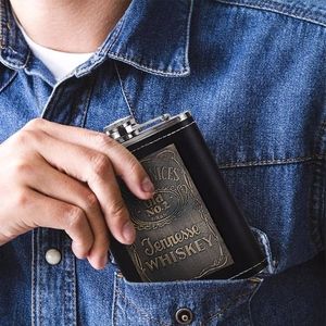 8 OZ Portable Stainless Steel and Leather Jack Daniel's Pocket Hip Flask