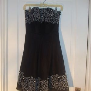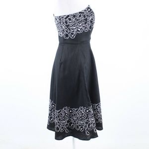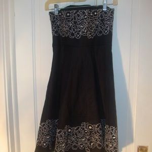 Ann Taylor Loft Linen Black with Floral Embroidery Strapless Dress sz 4P