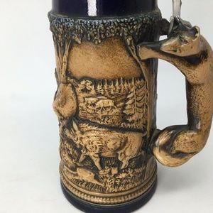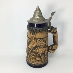 Gerz~Germany~Stein~Antique~Lidded~Beer~Large~Elk~Fox Handle~Tankard~Original~
