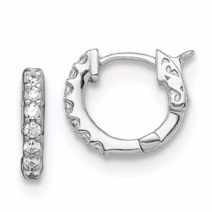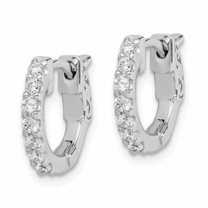 Sterling Silver Rhodium Plated CZ Small Hinged Hoop Earrings