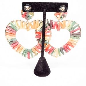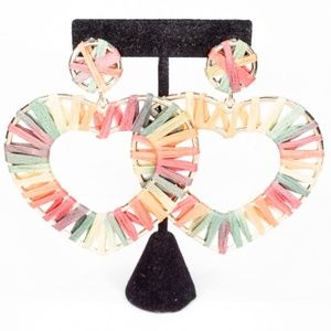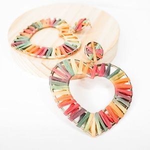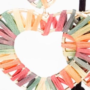 Rainbow Raffia Heart Dangle Earrings