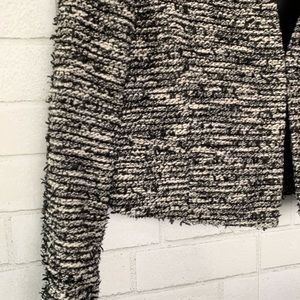 - Hook-and-bar closure - Long sleeves - Textured knit construction