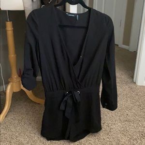 Worn once. Guess by Marciano Ashley Romper. Black. Size zero. Photo for reference of how it wears. Full sleeve or rolled up. Front clasp. Tie waist
