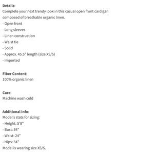 Open Front, Long Sleeve Waist Tie, Cardigan