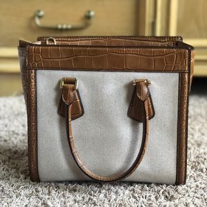 Tan Leather and fabric Michael Kors handbag. Crossbody strap included.
