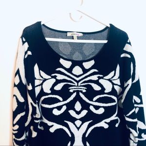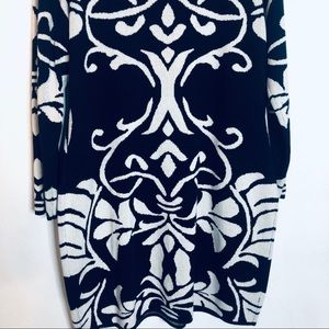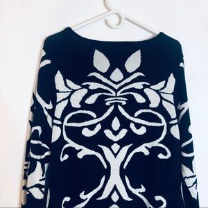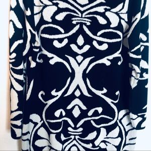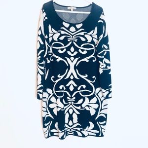 PLUS SIZE Sweaterdress Blue and White Damask Print