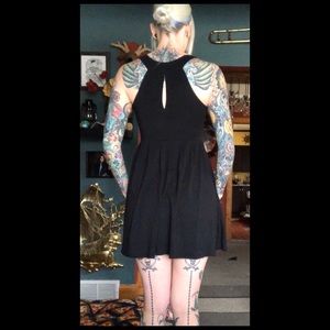 Fun and flirty little black dress! Features keyhole back, deep v front that gives even flat chested girls some cleavage, and ruched waist detail. GUC