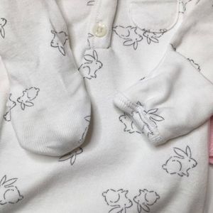 Size premature, total of 5 pieces, bundle comes with a pink sleeping bag, white/rabbits sleeping bag, and a 3 piece set with pink sweater, pink pant, and white shirt. Clothes were never used, they have no price tags, SMOKE AND PET FREE HOME.