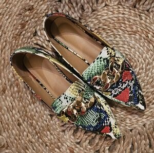 Ann Marino Bronze Mules in size 8.5. Has clear and one center amber color stone. Worn a few times. Looks great with most outfits.