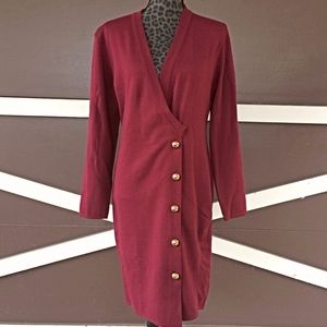 Harve Benard Dark Red Long Sleeve Wool Dress - Size Small