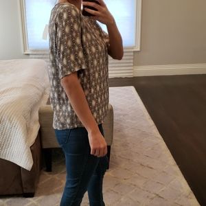 This is a gorgeous top with a stunning print. Beautiful color combination. Back slit. No size tag but fits like a medium. Brand new in perfect condition. Tags attached from a retailer. Purchased for $40+ tax. Buy it here for a fraction of the price I paid! Please let me know if you have any questions or would like to see additional images. Comes from a smoke and pet free environment.