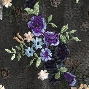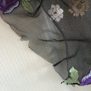 Kimchi Blue Lilac Embroidered Sheer Short Sleeve Tee from Urban Outfitters. This mesh top has the prettiest floral embroidery. Has some fraying at edges as shown in photos.