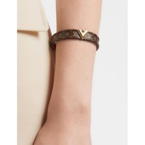 Gently Worn. Monograms Shows Up Well Still and V does have very minimum scratching but is present. Otherwise, absolutely beautiful. Please pay attention to size measurements in pics. Comes with box and jewelry bag (needs washed, see last pic for stain in bag, not a big deal, but disclosing. Price is firm, no trades. Must have established feedback to purchase. For protection of us both, I video record designer merchandise at post office in front of worker.