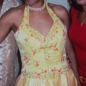 Beaded yellow Cinderella prom dress