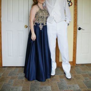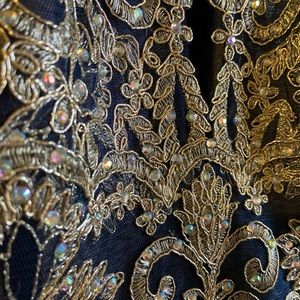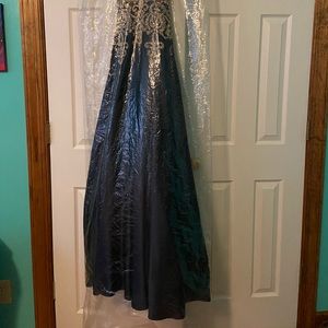 Worn for approximately 6 hours. No imperfections. This dress is flawless and has been kept inside a smoke free home in the bag. The dress is a size 6 and I am 5’1” and wore it with 4 inch heels. I did get it altered because it was a little too long. My bust is 35 inches, and the dress also has pockets. Only selling to get a new dress!