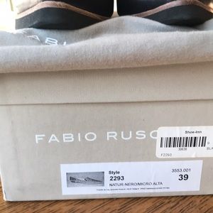 Beautiful butter-soft smooth black leather Fabio Rusconi slip on loafers with hard foam like soles making these shoes very comfortably and lightweight. They come with the box and labeled shoe bag as seen in photos. Size is marked 39 - European. I feel like these fit like an American 8.5 medium width, but you should decide based on other shoes that you are familiar with.