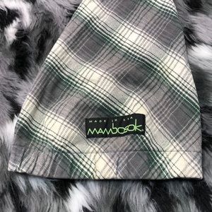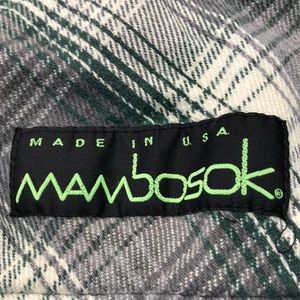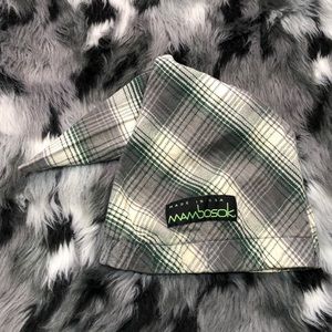 Rare Vintage Mambosok Snowboarding Skiing Outdoor Winter Sports Hat Green Grey and Cream Plaid Flannel Made in USA 23β long 34β circumference
