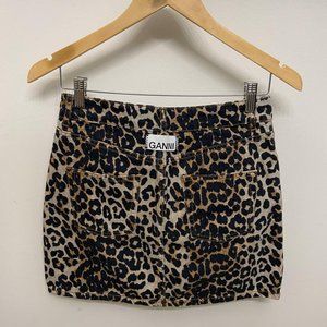 Ganni Leopard-Print Denim Mini Skirt Size 34/US2
