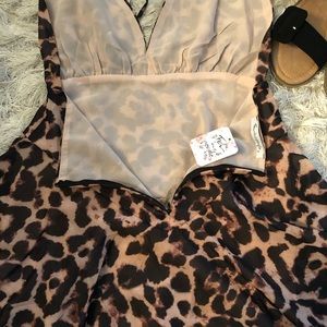 🌸FREE SHIPPING🌸This leopard dress is brand new and has never been worn! It features a liner underneath with a tie around the neck. The plunging neckline and open back are super sexy and perfect for showing off your Summer tan while the bottom of this dress is effortlessly flowy with a built in shorts liner. There’s a hidden zipper in back as well💖all photos are mine 💖this can be dressed up or worn casually