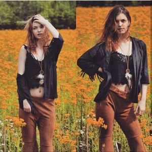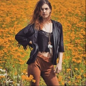 Cute boho fringed cardigan. Open fit. Fringed sleeves. Microsuede (92% polyester 8% spandex) also available in camel in a separate listing
