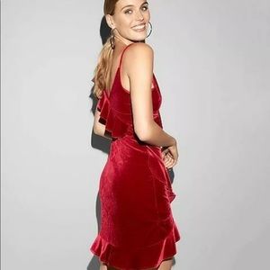 Express red velvet ruffle dress NWT