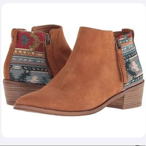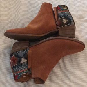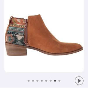 New Aldo booties with synthetic leather upper and stylish tribal embroidery at heels. Heel height is 1.5”. Absolutely adorable!