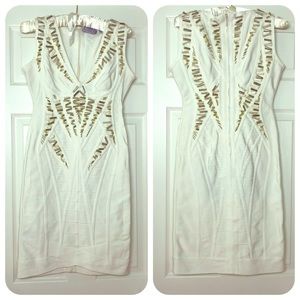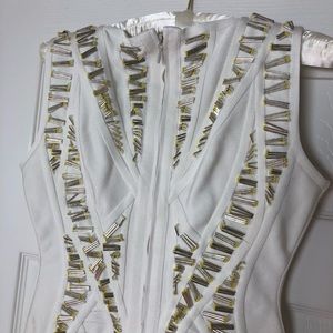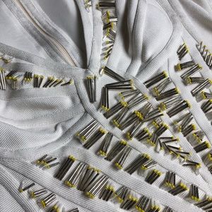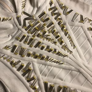 Herve Leger white dress with incredible detail and long shaped studs and stones, size small