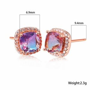 Stud, rainbow, post, purple, amethyst, halo, crystal, sparkling, bling, gift, square cut, princess cut, gift, wedding, love, engagement, bridal, emerald, topaz, simulated diamond, cushion, cut