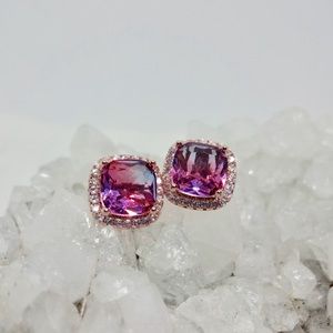 NEW Rose Gold 925 Purple Mystic Topaz halo earring