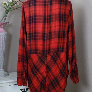This is a very soft, and lightweight flannel shirt. Hi-lo seem, buttons in the back, and 1 front pocket. Perfect condition.