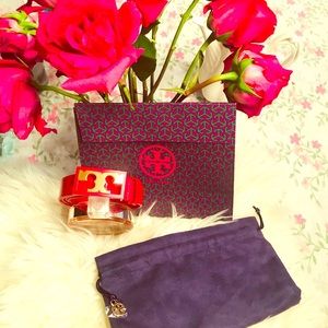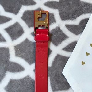 ✨VGUC - Shiny TB buckle and shiny fun leather. Pop of red is beautiful, instantly adds to plain jeans and tee or black dress! It is a used item so there are normal sign.