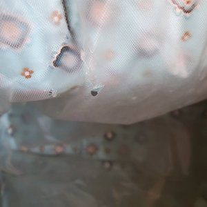 Cosmetic/makeup bag has some tears in plastic lining and very slight makeup staining that would not show up in pics.