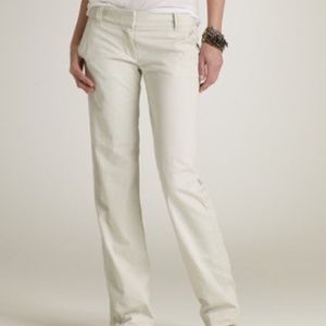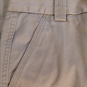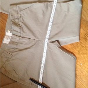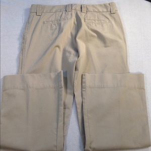 Classic Crew Chino relaxed fit for comfort, with hidden zipper and slant pockets for easy wear. 29.5" inseam, 20" hip laid flat, sits casually and soft cotton for all day wear! Perfect, size 6P.