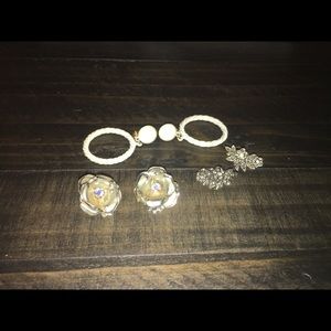 đź’ĄSilver flower Cora Clip Earrings with a center rhinestone. Slight scuffs on the edges of the petals. See pic.