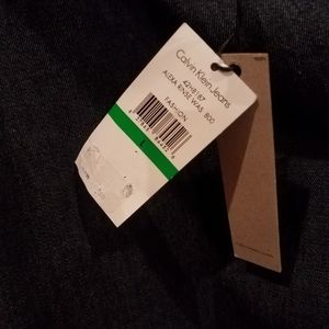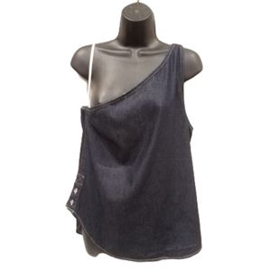 Calvin Klein Jeans "Alexa Rinse" denim rinse pull on one shoulder sleeveless top. Has curved hem and seaming details. Two functionable buttons on bottom right side. 100% Cotton. Machine wash. Imported. Regular Fit.