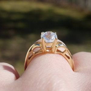 14k Solid Yellow Gold Diamonique Engagement Ring